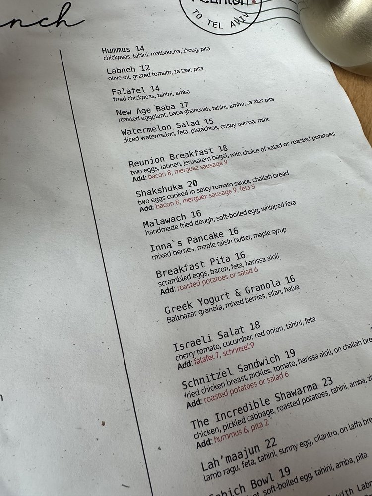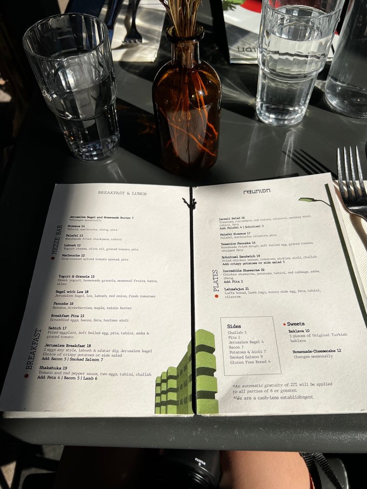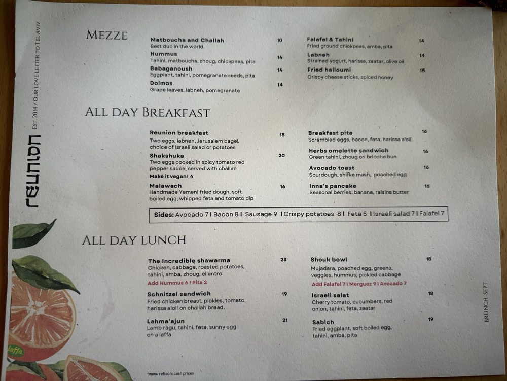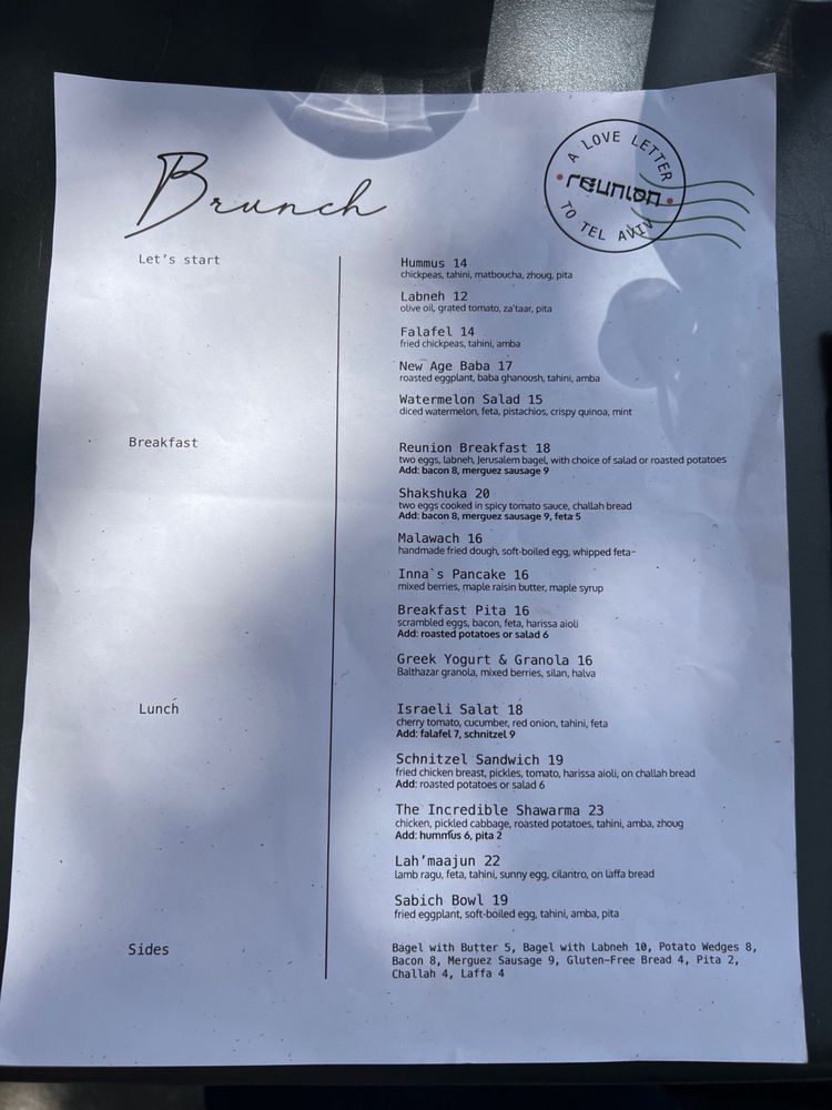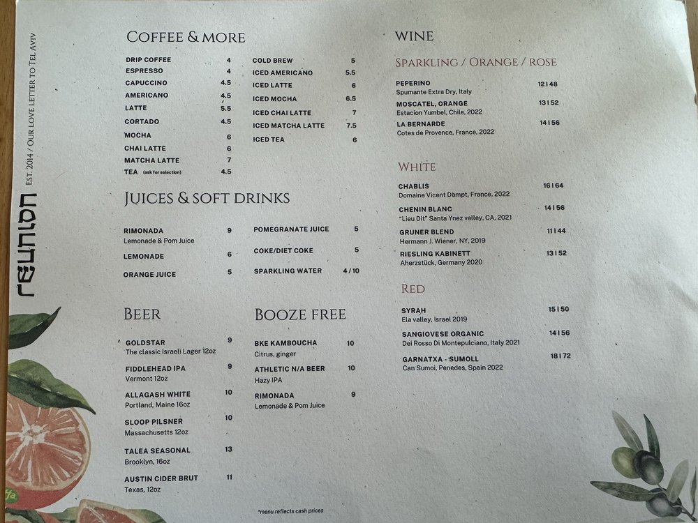 Reunion, located in Brooklyn, NY, is a vibrant spot offering Breakfast & Brunch, Cocktail Bars, and Middle Eastern cuisine. With a diverse menu that includes vegan and vegetarian options, outdoor seating, and a full bar, this hipster, trendy restaurant is a must-visit. Customers rave about the fresh and delicious dishes, such as the hummus, shakshuka, and labneh. The friendly staff and excellent service create a welcoming atmosphere for diners. Highlights include the crispy falafels, spicy honey dip with halloumi, and flavorful lamb sausages. Whether you're looking for a casual brunch or a unique dining experience, Reunion has something for everyone. Don't miss out on trying their signature cocktails and mouthwatering Israeli salads. Experience the taste of reunion at this gem of a restaurant.